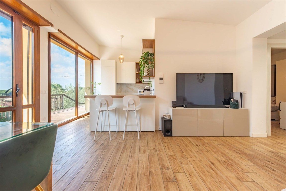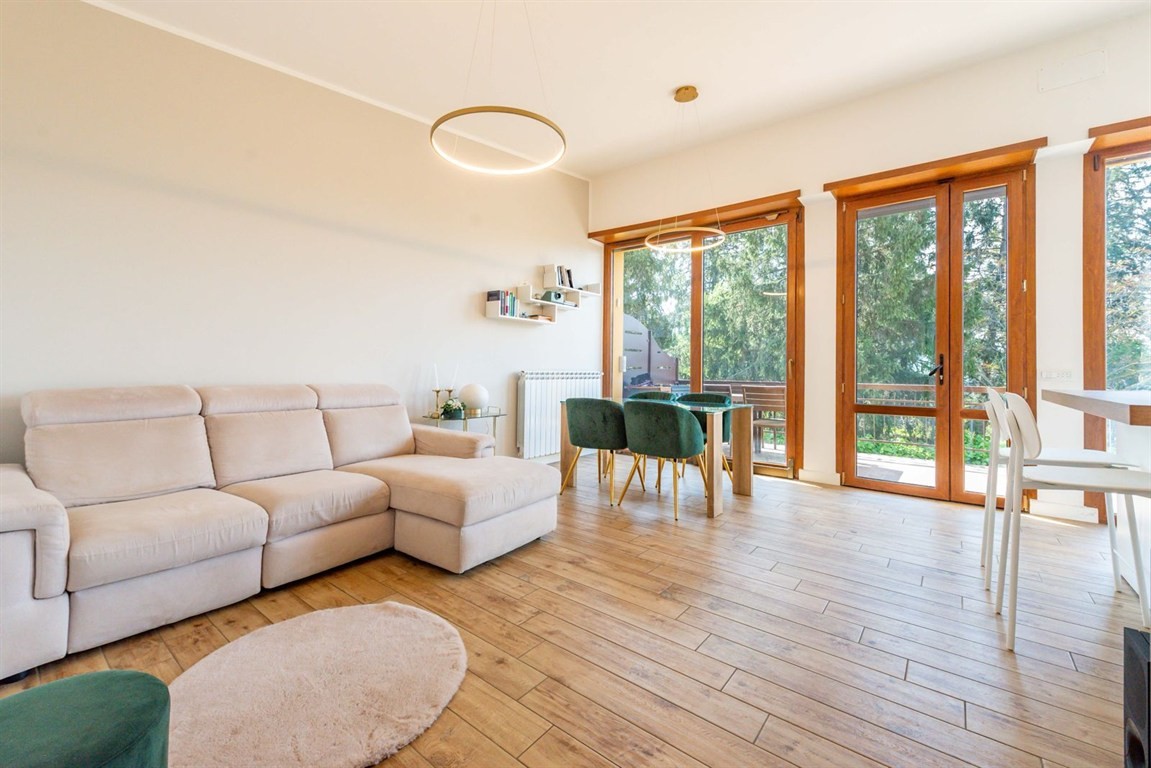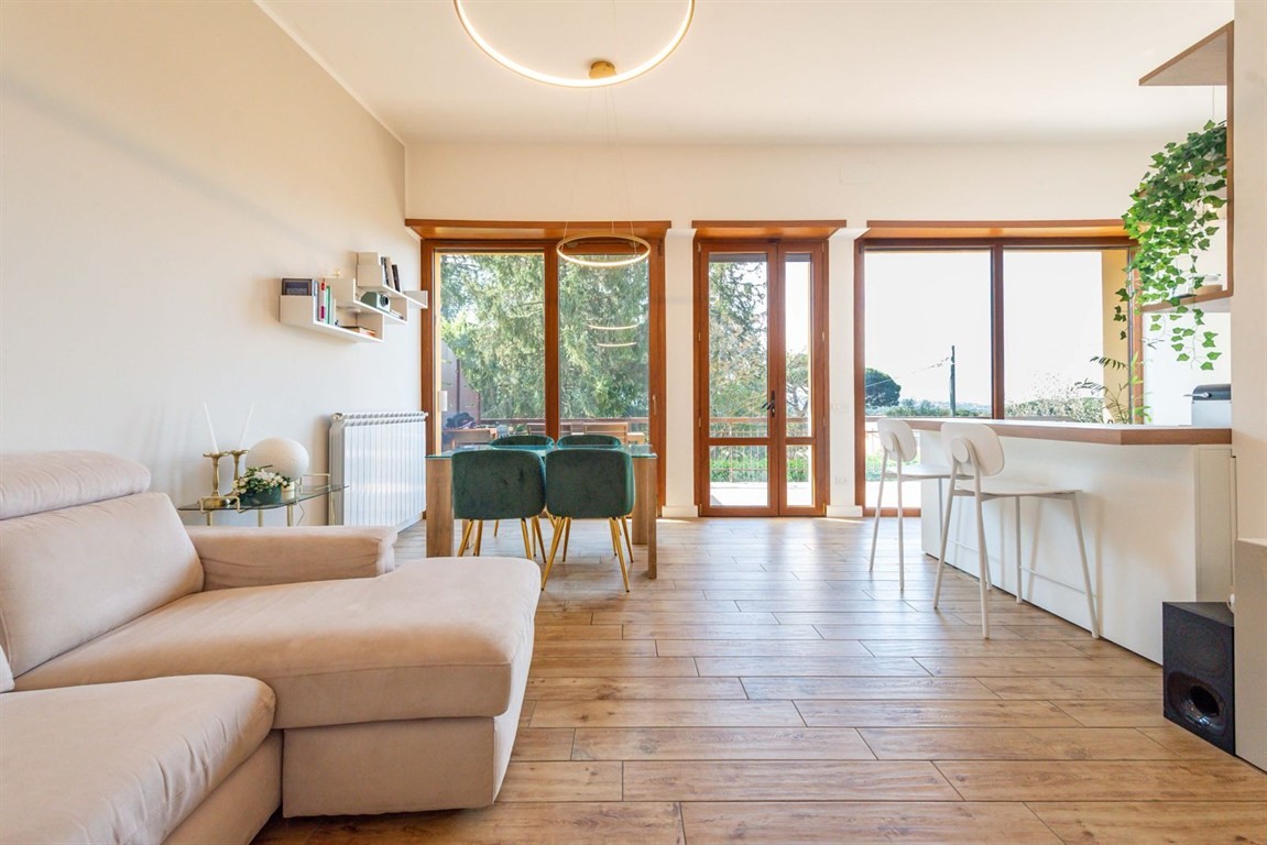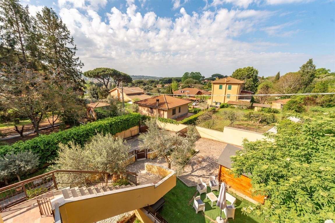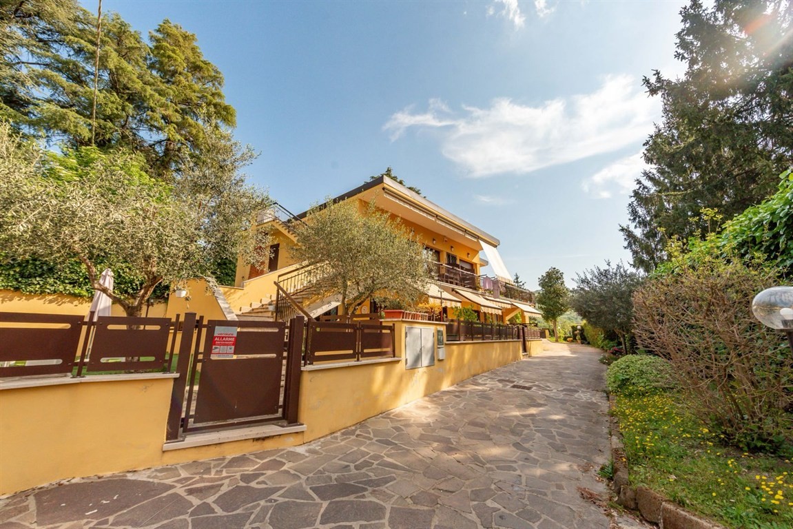Grottaferrata in delizioso complesso immerso nel verde e nella tranquillità, proponiamo in vendita un raffinato immobile con accesso indipendente. Accedendo alla proprietà si viene accolti da un' ampio spazio esterno in parte mattonato in parte verde per trascorrere giornate di relax all'aria aperta e dove è possibile parcheggiare due auto. L'accesso alla proprietà è sia dal cancello carrabile che dal cancelletto d'ingresso che introduce al giardino e alla scala per salire all'appartamento. Attraverso le ampie vetrate che rendono la zona giorno estremamente luminosa e panoramica si accede al soggiorno con cucina COMPLETAMENTE ARREDATA, alla camera da letto matrimoniale con armadio su misura e bagno privato, alla cameretta e al secondo bagno. Attraverso una scala esterna si sale al terrazzo sovrastante dove è possibile realizzare una veranda/serra solare. Completano la proprietà due posti auto nel parcheggio condominiale. L'immobile è in perfette condizioni dotato di allarme sia sulle finestre, sia sulle tapparelle, perimetrale, sensori esterni e videocamere, appena ritinteggiato viene venduto parzialmente arredato